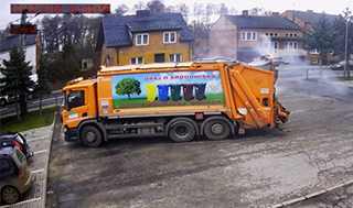 Kłęby dymu nad śmieciarką